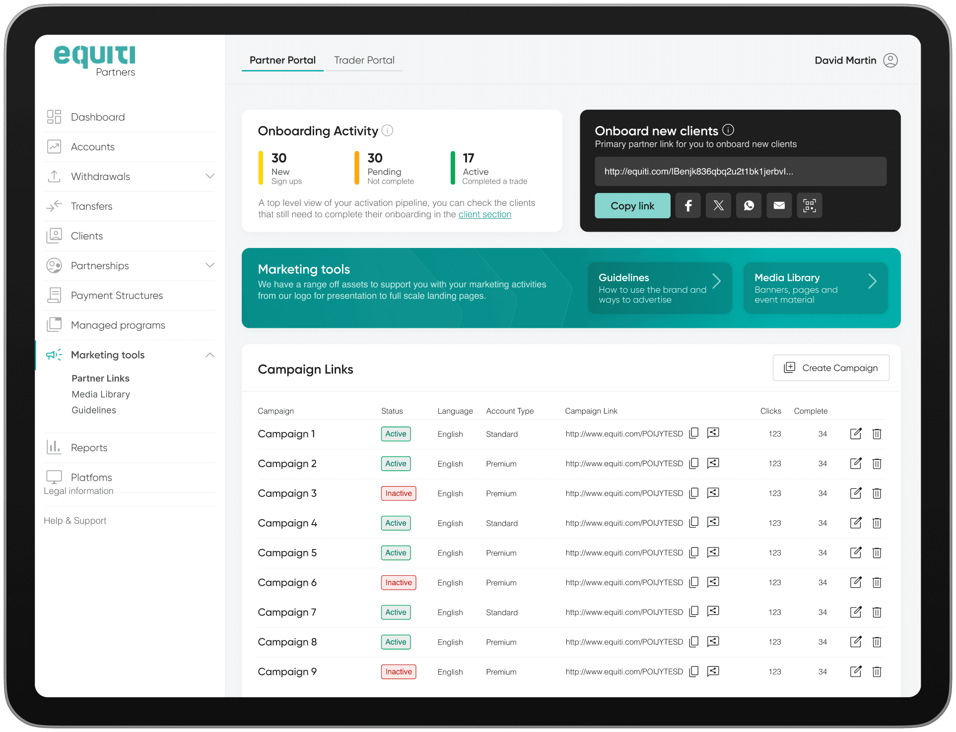 We partnered with Equiti to enhance and expand their suite of partner and trading products, with a sharp focus on user-centric innovation. Through in-depth user research and stakeholder collaboration, we identified key pain points and opportunities across the partner and trading journeys. These insights shaped the product roadmap, vision, and experience strategy. By applying rapid prototyping and iterative testing, we validated new concepts early ensuring every feature brought measurable value before being scaled to market.
