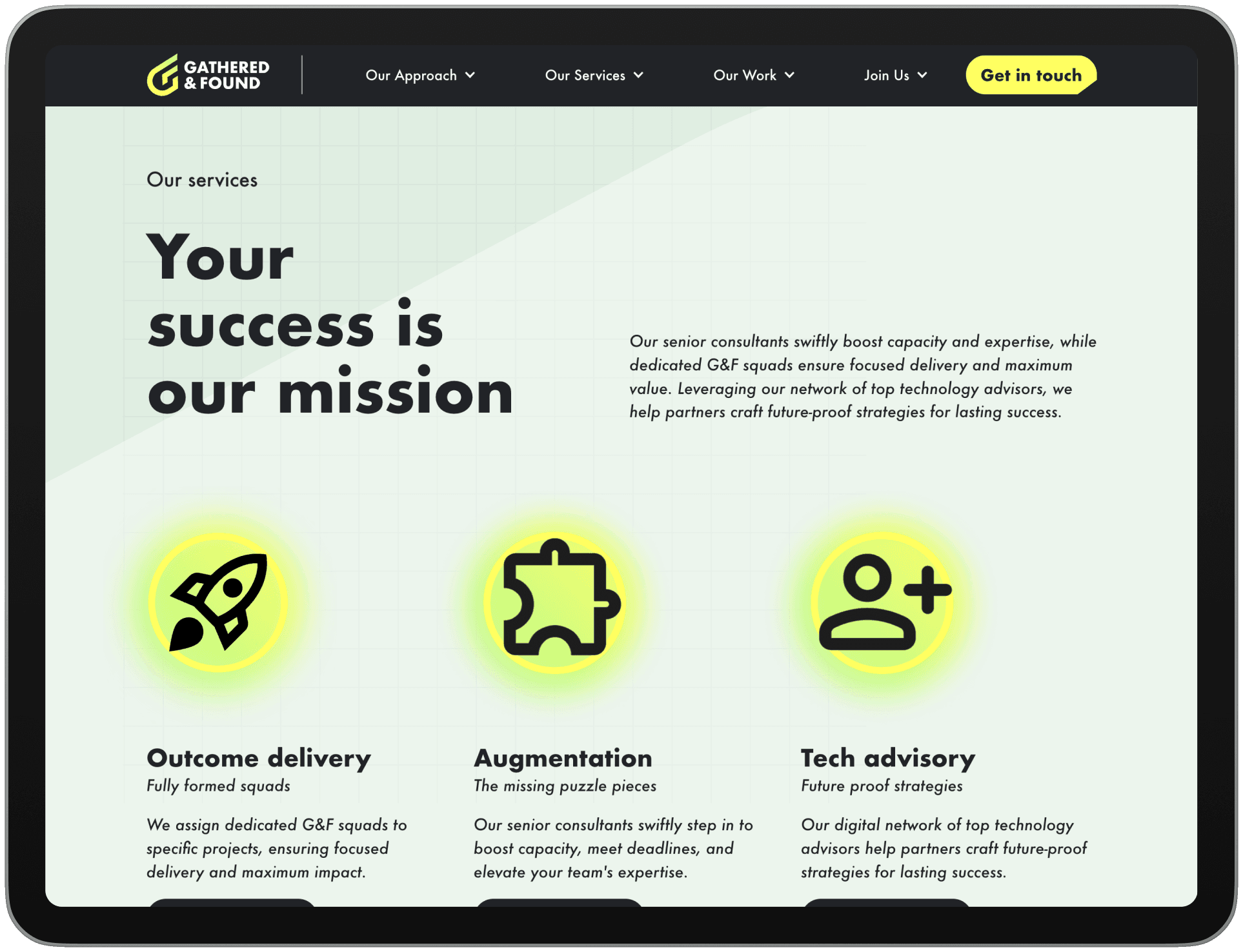 G&F came to us with a vision of standing apart from traditional consulting groups. We worked closely with their leadership to create a human, modern brand system that reflects their values. From digital storytelling to intuitive UX, we focused on making their proposition feel accessible and differentiated.