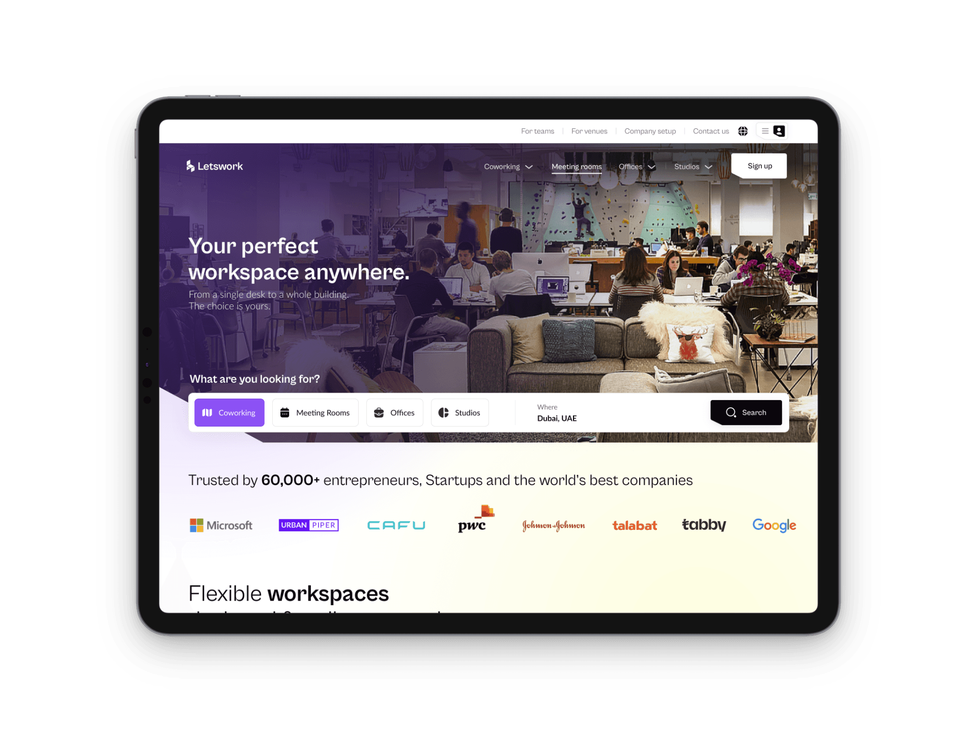 A mobile-first workspace booking experience that drives growth through usability and convenience, positioning Letswork as a regional category leader in PropTech.