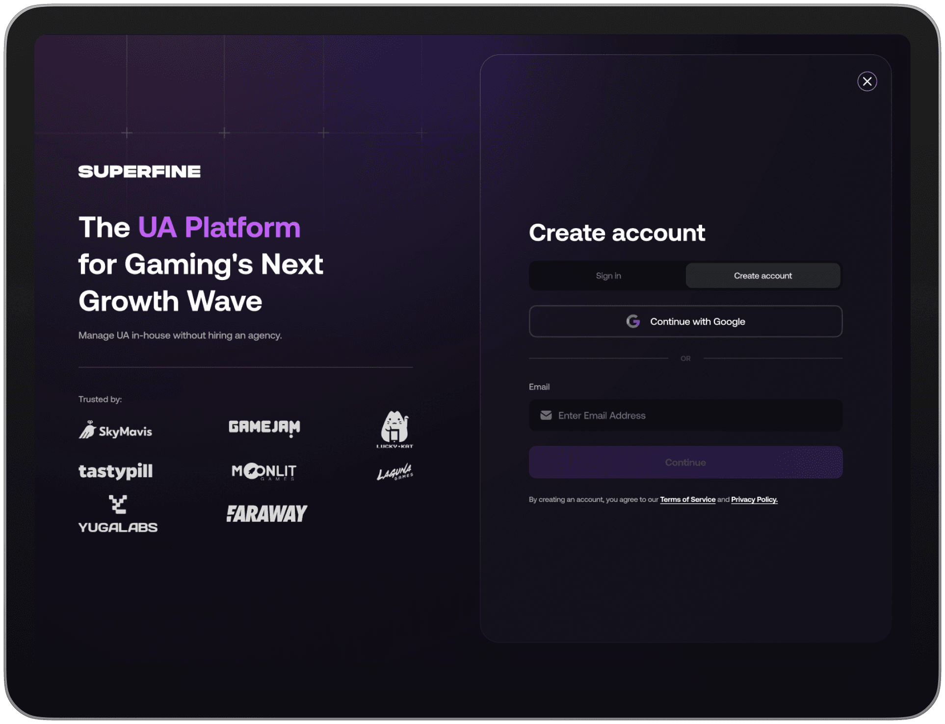 A performance-led marketing platform that combines precision UX with data-driven design—helping SUPERFINE convert more users, faster.