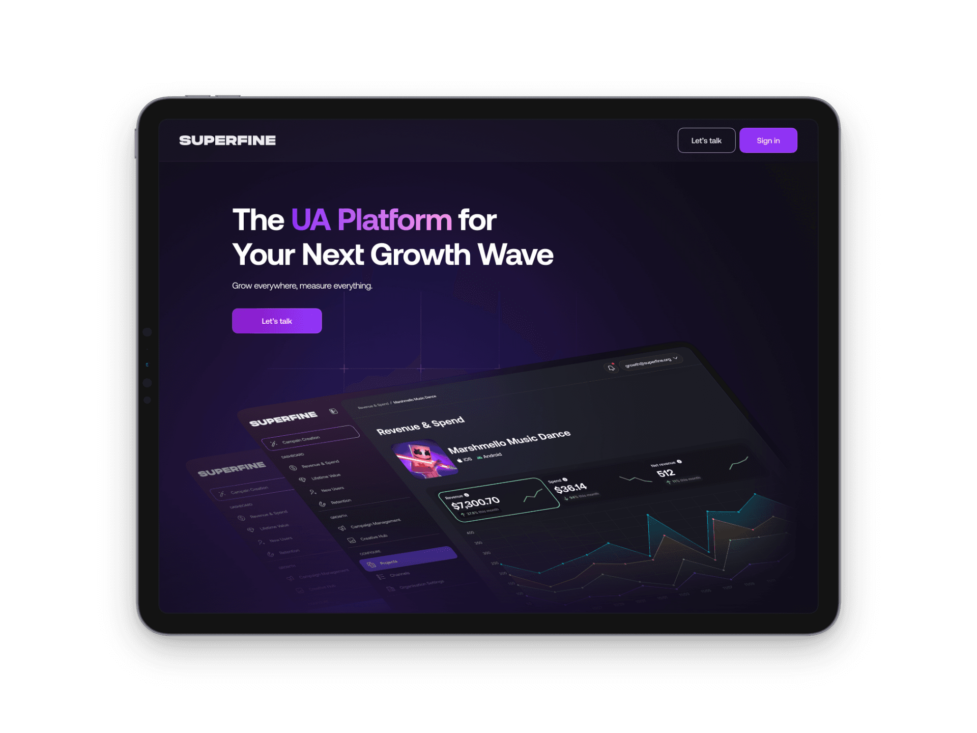 We partnered with SUPERFINE to enhance their platform experience and enable scalable, intelligent user acquisition. Using AI as the backbone, we crafted interfaces that highlight real-time performance, optimization tools, and intuitive workflows. Our focus was to bring their tech-led proposition to life while improving usability and campaign management.