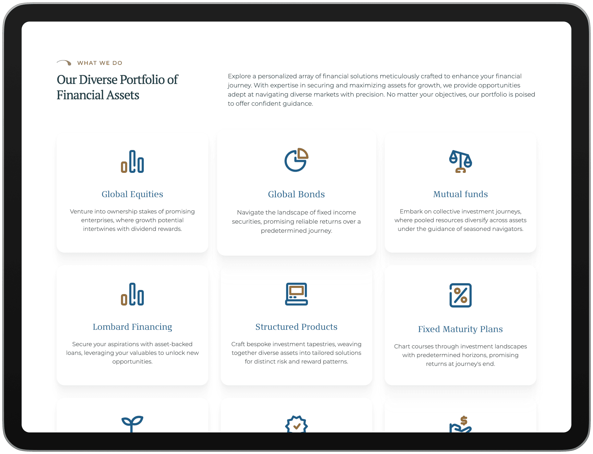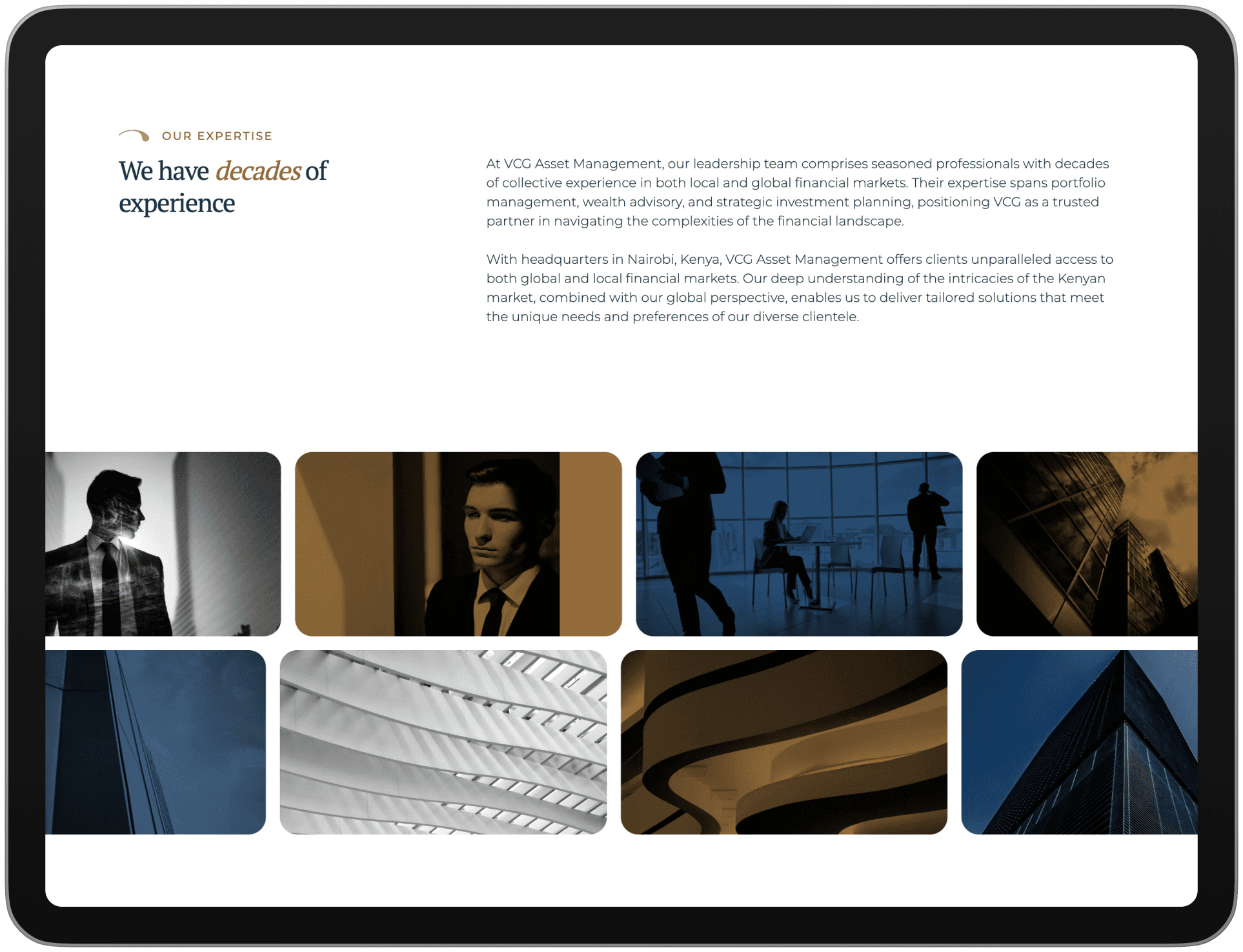 With a focus on emerging markets, VCG needed a brand and platform that inspires trust and global reach. We worked on refining their identity and digital presence to resonate with high-net-worth individuals and institutional clients alike. Our design direction merged clarity, prestige, and approachability.